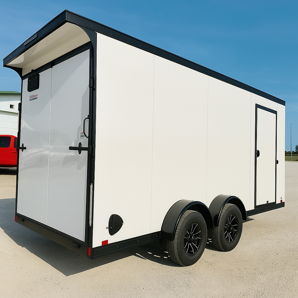 Nationwide distributor of enclosed trailers, car trailers, cargo trailers, stacker trailers, motorcycle trailers, and living quarters trailers for sale.
